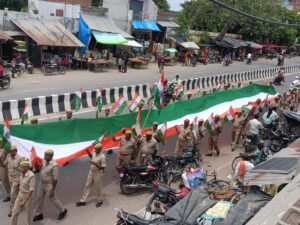 फोटो कैप्सन–हर घर तिरंगा अभियान के तहत कस्बा में निकलती होमगार्ड बल द्वारा निकाली गई विशाल तिरंगा यात्रा।