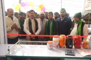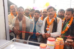 फोटो कैप्सन–कस्बा स्थित दवाओं के नवीन प्रतिष्ठान माया मेडीकोज का फीता काटकर शुभारंभ करते भारतीय किसान यूनियन के राष्ट्रीय अध्यक्ष कुलदीप पांडेय।