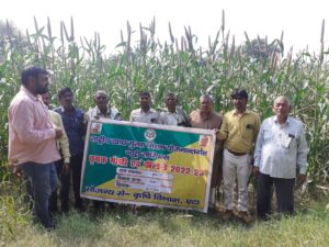 –बाजरा की खड़ी फसल का प्रदर्शन कराते कृषि अधिकारी।