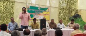 फोटो कैप्सन–ब्लाक क्षेत्र मारहरा के गांव बुढर्रा में आयोजित राष्ट्रीय खाद्य सुरक्षा मिशन कार्यक्रम को संबोधित करते जिला कृषि सलाहकार देवेंद्र सिंह यादव।