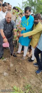 फोटो कैप्सन–ब्लाक मारहरा की ग्राम पंचायत ख्वाजगीपुर में बन रहे अमृत सरोवर के किनारे पौधरोपण करते एटा सांसद राजवीर सिंह राजू भैय्या।
