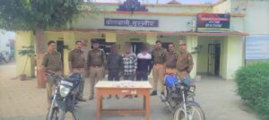 सम्भल: दिनांक 3-11-22 थाना गुन्नौर क्षेत्र अंतर्गत अज्ञात अभियुक्त गण द्वारा पशु चिकित्सा केंद्र से आगे ग्राम बाघाऊ के सामने मोटरसाइकिल सवार महिला से तमंचे के बल पर ₹11500 व कानों के दो कुंडल ब सोने की चैन लूट लिए जाने के संबंध में थाना गुन्नौर पर मुकदमा पंजीकृत किया गया था उपरोक्त घटना के खुलासे हेतु टीमें गठित की गई थी पुलिस अधीक्षक चक्रेश मिश्र के कुशल नेतृत्व मैं जनपद संभल में कानून व्यवस्था अपराध एवं अपराधियों पर प्रभावी नियंत्रण हेतु चेकिंग अभियान के तहत आज दिनांक 5-11- 22 को थाना गुन्नौर पुलिस द्वारा गंगा बैराज के सामने से तीन अभियुक्त दिनेश पुत्र महेंद्र निवासी ग्राम भगवंत पुर थाना अहार जनपद बुलंदशहर सोनू पुत्र हरी सिंह निवासी ग्राम नगला कोठी थाना रामघाट जनपद बुलंदशहर आरोपियों का 1 साथी अभी सनी पुत्र झंडा सिंह निवासी ग्राम रूड़ थाना अनूपशहर जनपद बुलंदशहर फरार चल रहा है