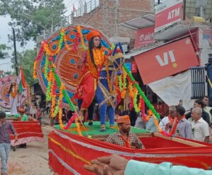 फोटो कैप्सन–बीरांगना अबंतीबाई की शोभायात्रा कासजातीय बंधुओं के साथ नेतृत्व कर रहे विधायक बीरेंद्र सिंह लोधी।