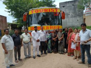 फोटो कैप्सन–ब्लाक मारहरा में कार्यरत एन.आर.एल.एम. की 20 दीदियों की चार टोलियों को अपनी उपस्थिति में शाहजहांपुर के लिये रवाना करते बीडीओ मनोज कुमार शर्मा।