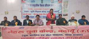 बदायूं 30 दिसंबर। युवा कार्यक्रम एवं खेल मंत्रालय भारत सरकार के नेहरू युवा केंद्र बदायूं द्वारा तीन दिवसीय “युवा नेतृत्व एवं सामुदायिक विकास कार्यक्रम” का आज समापन किया गया।समापन के अवसर पर कार्यक्रम की मुख्य अतिथि गंगा समग्र की प्रांतीय संयोजक सीमा चौहान एवं जिला युवा अधिकारी डॉ दिनेश यादव ने प्रशिक्षत युवाओं को प्रशिक्षण प्रमाण पत्र और प्रशिक्षण किट प्रदान कर उनके उज्ज्वल भविष्य की कामना की।