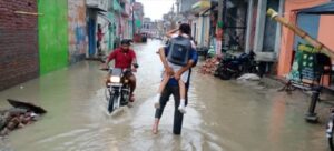 आधे घंटे की बरसात में भयंकर जलभराव की तस्वीरें गुन्नौर थाना के कस्बा बबराला के स्टेशन रोड की हैं
