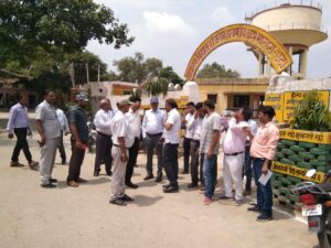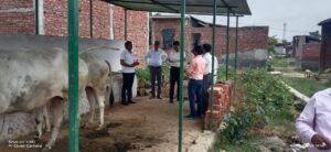 –ग्राम पंचायत जिन्हैरा में बने पशु शैड़ व प्राथमिक विद्यालय में हुये कार्यों को देखते अधिकारी।