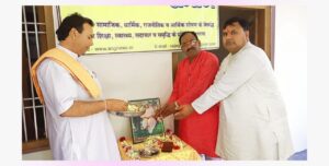 –पिता के चित्र पर पुष्प अर्पित कर श्रद्धा सुमन अर्पित करते शिक्षक नेता अवधेश यादव, रवीश कुमार और ओमपाल शास्त्री।