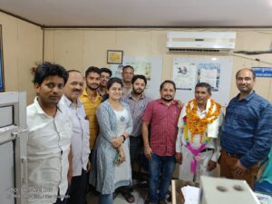 फोटो कैप्सन–स्थानांतरित हैड मैसेंजर पूरन सिंह को शॉल ओढ़ाकर माल्यार्पण कर विदाई देते शाखा प्रबंधक कृष्ण कुमार।