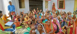 फोटो कैप्सन– ब्लाक परिसर में आहुत बैठक में आठ सूत्रीय मांगों को लेकर रणनीति बनाती रसोइयां।