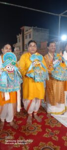 जिसमें प्रभु श्री के भजनों का आनंद लेकर भाव विभोर होकर उनकी आरती हुई और उसके पश्चात समापन पर आरती के पश्चात भगवान का भोग और शयन कराया गया कल ढाई बजे दोपहर प्रभु श्री जगन्नाथ जी महाराज रथ पर सवार होकर नगर भ्रमण करेंगे जो पूरे नगर में अपना दर्शन देते हुए वापस बिरुआ बाडी मंदिर में आकर विश्राम करेंगे जहां महाआरती संपन्न होगी