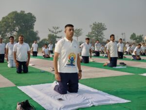 कासगंज : आठवें अंतरराष्ट्रीय योग दिवस के अवसर पर पुलिस अधीक्षक रोहन प्रमोद बोत्रे के निर्देशन में जनपद के सभी थानों में तैनात पुलिसकर्मियों द्वारा योगाभ्यास किया गया, इसके साथ ही पुलिस अधीक्षक कासगंज द्वारा स्वयं पुलिस लाइन कासगंज में उपस्थित रहकर समस्त पुलिसकर्मियों के साथ योगाभ्यास किया गया, इसके पश्चात पुलिस अधीक्षक महोदय द्वारा पुलिसकर्मियों को उनके भागदौड़ भरे जीवनशैली में योग के महत्व को बताकर उनके रोजमर्रा के जीवन मे योगाभ्यास को निरंतर करने से होने वाले लाभ के बारे में बताया गया तथा प्रतिदिन 1 घण्टे योग करने की सलाह दी गयी,