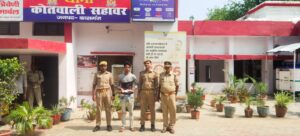 कासगंज : पुलिस अधीक्षक बीबीजीटीएस मूर्ति के कुशल निर्देशन व अपर पुलिस अधीक्षक अनिल कुमार के नेतृत्व में अपराध नियंत्रण की दिशा में जनपद के सभी थानों पर अवैध असलाह/आयुध रखने के विरूद्ध चलाये जा रहे विशेष अभियान के क्रम में शनिवार को समय तकरीबन साढ़े ग्यारह बजे थाना सहावर पुलिस द्वारा एक शातिर अभि0 सलमान पुत्र भूरे खां निवासी मौ0 चौधरी कस्बा व थाना सहावर जनपद कासगंज को बोदर रोड पेट्रोल पम्प के पास से गिरफ्तार करने में सफलता प्राप्त की है