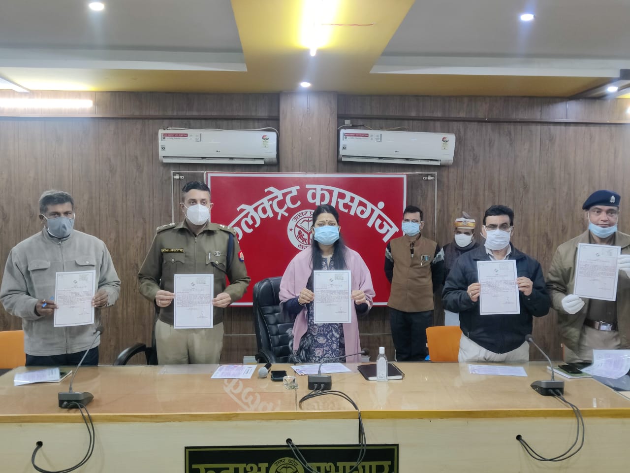 कासगंज: जिलाधिकारी/जिला निर्वाचन अधिकारी हर्षिता माथुर ने पुलिस अधीक्षक रोहन प्रमोद बोत्रे व अन्य वरिष्ठ अधिकारियों के साथ कलेक्ट्रेट सभागार में आयोजित स्वीप बैठक के दौरान 25 जनवरी को होने वाले राष्ट्रीय मतदाता दिवस के उपलक्ष्य में वीडियो मेकिंग कम्पटीशन का शुभारंभ किया। इस कम्पटीशन की थीम है-(1) आओ चलें मतदान करें। (2) -महिला मतदाता (3)-युवा मतदाता (4)-80 वर्ष से अधिक आयु के मतदाता (5)-दिव्यांग मतदाता (6)-मतदान में कोविड उचित व्यवहार।। कम्पटीशन में सहभागिता करने हेतु कविता, स्लोगन, नृत्य प्रदर्शन या गीत से सम्बन्धित