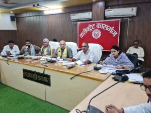 कासगंज: मा0 मंत्री कृषि, कृषि शिक्षा एवं कृषि अनुसंधान विभाग उ0प्र0 एवं अलीगढ़ मण्डल के प्रभारी मंत्री श्री सूर्य प्रताप शाही जी ने जनपद भ्रमण के दौरान कलेक्ट्रेट सभागार में जिलाधिकारी हर्षिता माथुर एवं अन्य जिलास्तरीय अधिकारियों के साथ समीक्षा बैठक कर कृषि, संचारी रोगों के नियंत्रण एवं वर्षा से हुई क्षति के सही आंकलन कराने के सम्बंध में आवश्यक दिशा निर्देश दिये। तत्पश्चात मंत्री जी ने तहसील पटियाली क्षेत्र के गंगा तट पर स्थित ग्राम बरौना पहुंच कर वहां बढ़े जलस्तर से हुये कटान तथा क्षति का मौके पर जायजा लिया।