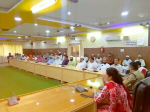 कासगंजः जिलाधिकारी हर्षिता माथुर ने गुरूवार को गंगा दशहरा पर्व पर बड़ी संख्या में स्नान हेतु आने वाले श्रद्धालुओं तथा 10 जून को जुमे की नमाज के दृष्टिगत जनपद में आपसी सौहार्द एवं कानून व्यवस्था बनाये रखने के लिये कलेक्ट्रेट सभागार में आयोजित बैठक के दौरान धर्मगुरूओं से सीधा संवाद करते हुये उनसे सहयोग की अपेक्षा की।