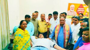 कासगंज। प्रधानमंत्री नरेंद्र मोदी के जन्मदिवस के उपलक्ष में मनाए जा रहे सेवा पखवाड़ा के तहत भाजयुमो जिलाध्यक्ष कुलदीप प्रतिहार के नेतृत्व में भाजपा जिला कार्यालय पर रक्तदान शिविर लगाया गया।
