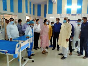 मंत्री जी ने चिकित्सालय में वैण्टीलेटरों, महिला पुरूष वार्डो, बैडों, बच्चों के वार्डों, मरीजों के उपचार, चिकित्सकों व दवाओं की उपलब्धता, पेयजल तथा परिसर में साफ सफाई का बारीकी से निरीक्षण किया। मंत्री जी ने कहा कि कोविड के खतरे से निपटने के लिये पूरी तरह से तैयार रहें। सभी व्यवस्थायें पूर्ण कर लें। किसी भी एमरजेंसी के लिये तैयार रहें। शौचालयों तथा परिसर में साफ सफाई बनाये रखें। बच्चों के लिये बनाये गये पीकू वार्ड का भी निरीक्षण किया। जनपद में संचालित ऑक्सीजन प्लांटों के सम्बन्ध में भी जानकारी प्राप्त की।