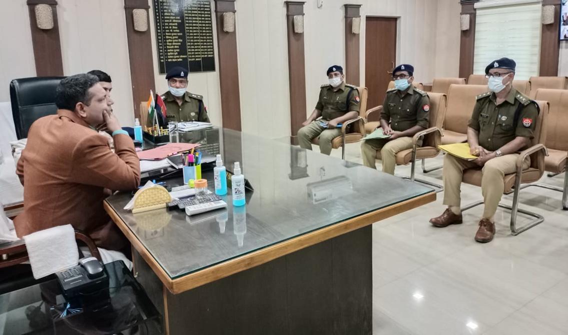 कासगंज : पुलिस उपमहानिरीक्षक अलीगढ़, परिक्षेत्र अलीगढ़ श्री दीपक कुमार द्वारा जनपद में दिनांक 20.02.2022 को तृतीय चरण में होने वाले विधान सभा चुनाव को सकुशल सम्पन्न कराये जाने के सम्बन्ध में जनपद के पुलिस अधिकारियों के साथ समीक्षा की गयी, समीक्षा के दौरान पुलिस उपमहानिरीक्षक महोदय अलीगढ़, परिक्षेत्र अलीगढ़ द्वारा भयमुक्त वातावरण में विधान सभा चुनाव को सकुशल सम्पन्न कराये जाने एवं चुनाव ड्यूटी हेतु बाहर से आये पुलिस कर्मियों के ठहरने के स्थानों को लेकर आवश्यक दिशा निर्देश दिये गये ।