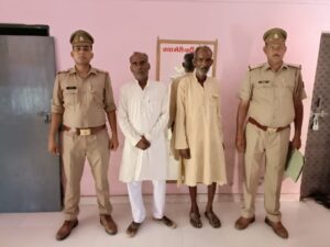 सोंरो (कासगंज) एसपी रोहन प्रमोद बोत्रे के कुशल निर्देशन व अपर पुलिस अधीक्षक अनिल कुमार के नेतृत्व में जनपद के सभी थानों पर अपराध एवं अपराधियों के विरूद्ध चलाये जा रहे विशेष अभियान के क्रम में सोमवार की रात्रि में थाना सोरों पुलिस के द्वारा मुखबिर खास की सूचना पर दो जिला बदर अपराधी 1. अशोक पुत्र केदरीलाल नि0 ग्राम आलमपुर थाना सोरों जिला कासगंज 2. कप्तान सिंह पुत्र मोहर सिंह निवासी ग्राम आलमपुर थाना सोरों जिला कासगंज को प्राइमरी स्कूल के पास ग्राम करूआवारा से समय करीब 22.50 बजे गिरफ्तार किया गया ।