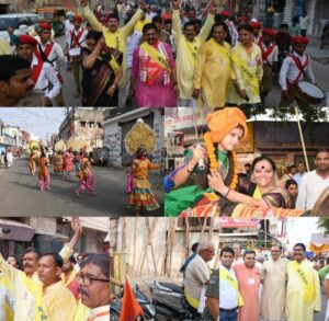 इसके पश्चात भगवान परशुराम शोभायात्रा का शुभारम्भ प्रदेश अध्यक्ष पंडित त्रिभुवन शर्मा एवं मंडल महामंत्री अजय मिश्रा द्वारा नारियल फोडकर किया गया । इसमें स्कूली झाकियां, व्यवसायिक बैंड, काली के अखाडे, परशुराम जी के जीवन वृंत का सुंदर चित्रण किया गया जोकि धर्मशाला से प्रारंभ होकर गोपी चौक, नेहरू चौक, हलवाई चौक, पुराना बाजार ,रजी चौक, कश्मीरी चौक गांधी ग्राउंड होते हुए