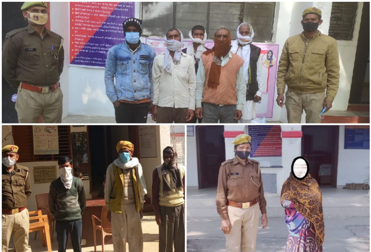 बदायूँ : शान्ति व्यवस्था भंग करने वाले अभियुक्तो के विरूद्ध कार्यवाही के अन्तर्गत थाना उसावां पुलिस पुलिस द्वारा 05 आरोपित शौकसीन , प्रताप सिंह पुत्रगण अर्जुन सिंह , निर्भान सिंह पुत्र गुलफाम सिंह , अनार सिंह पुत्र पान सिंह , रमेश पुत्र करन सिंह समस्त नि0गण ग्राम अभिगांव थाना उसावां जनपद बदायूं व थाना कुवरगांव पुलिस द्वारा 03 आरोपित धर्मेंद्र सिंह पुत्र सूरजपाल , अवनेश पुत्र जसवीर , सरीफ अहमद पुत्र रहीश अहमद नि0गण युसूफनगर थाना कुवरगाँव जनपद बदायूँ तथा थाना बिनावर पुलिस द्वारा 01 नफर आरोपी माया देवी पत्नी धर्मवीर निवासी ग्राम मलगांव थाना बिनावर जनपद बदायूं को अन्तर्गत धारा 151/107/116 सीआरपीसी में गिरफ्तार कर मा0 न्या0 के समक्ष पेश किया गया ।