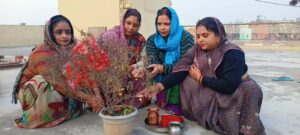 संवाद सूत्र, मिरहची: महिलाओं ने तुलसी के पौधे की पूजा कर मनाया तुलसी दिवस। घर की खुशहाली को मांगी मनौतियां।
