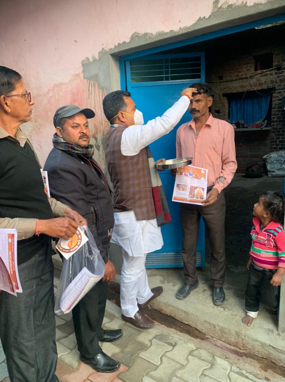 बदायूँ : भाजपा कार्यकर्ताओं ने घर- घर जाकर लाभार्थियों को कुमकुम तिलक लगाने का अभियान शुरू किया। भाजपा जिलाध्यक्ष राजीव कुमार गुप्ता ने बदायूँ नगर के बूथ संख्या: 227, 237 में लाभार्थी संपर्क अभियान के अंतर्गत घर- घर जाकर लाभार्थियों से संपर्क किया और लाभार्थियों के कुमकुम तिलक लगाया एवं पार्टी का हैंडबिल भेंट किया। साथ ही लाभार्थी के घर पर ”पूरी हुई हर आस, घर- घर हुआ विकास” का स्टीकर भी लगाया। उन्होंने सभी भाजपा कार्यकर्ताओ से आदर्श आचार संहिता एवं कोविड के नियमों का पालन करते हुए घर- घर जाकर सम्पर्क करने का आवाहन किया। यह सम्पर्क अभियान जिले के सभी बूथों पर शुरू हो गया है। उन्होंने सम्पर्क के दौरान केंद्र और प्रदेश सरकार की उपलब्धियों को भी जनता में बताया। इस मौके पर जितेन्द्र साहू गोपाल शर्मा मनोज चन्देल उपस्थित रहे।