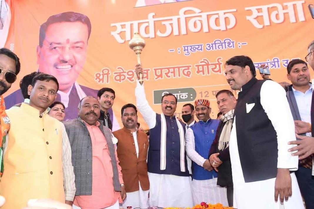 उप मुख्यमंत्री केशव प्रसाद मौर्य ने कादरचौक बाजार में भाजपा प्रत्याशी धर्मेंद्र शाक्य के समर्थन में चुनावी सभा को संबोधित किया